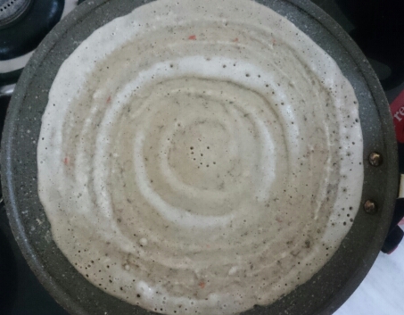 - Take a dosa tava and spread the batter evenly