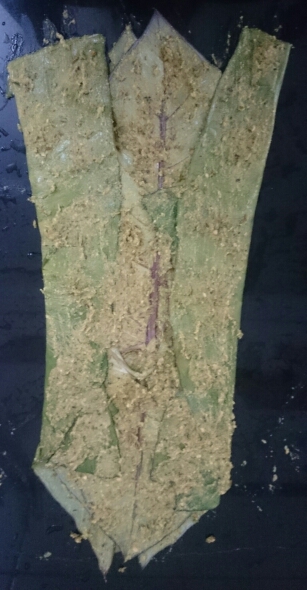• Now apply the batter generously all over the leaf evenly. Approx. 1-2 tbs