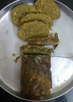 Recipe: Moong Sprout Alu Wadi /Patrode (Colocasia leaves rolls)