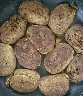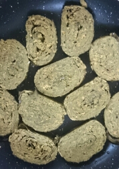 sprouted. Usually I soak them at afternoon around 1 pm, drain them while going to sleep and they are ready in the morning. Grind them coarsely (don’t remove the peels) using ½ cup water. This recipe is for 1 roll, double it if you are doing 2 rolls